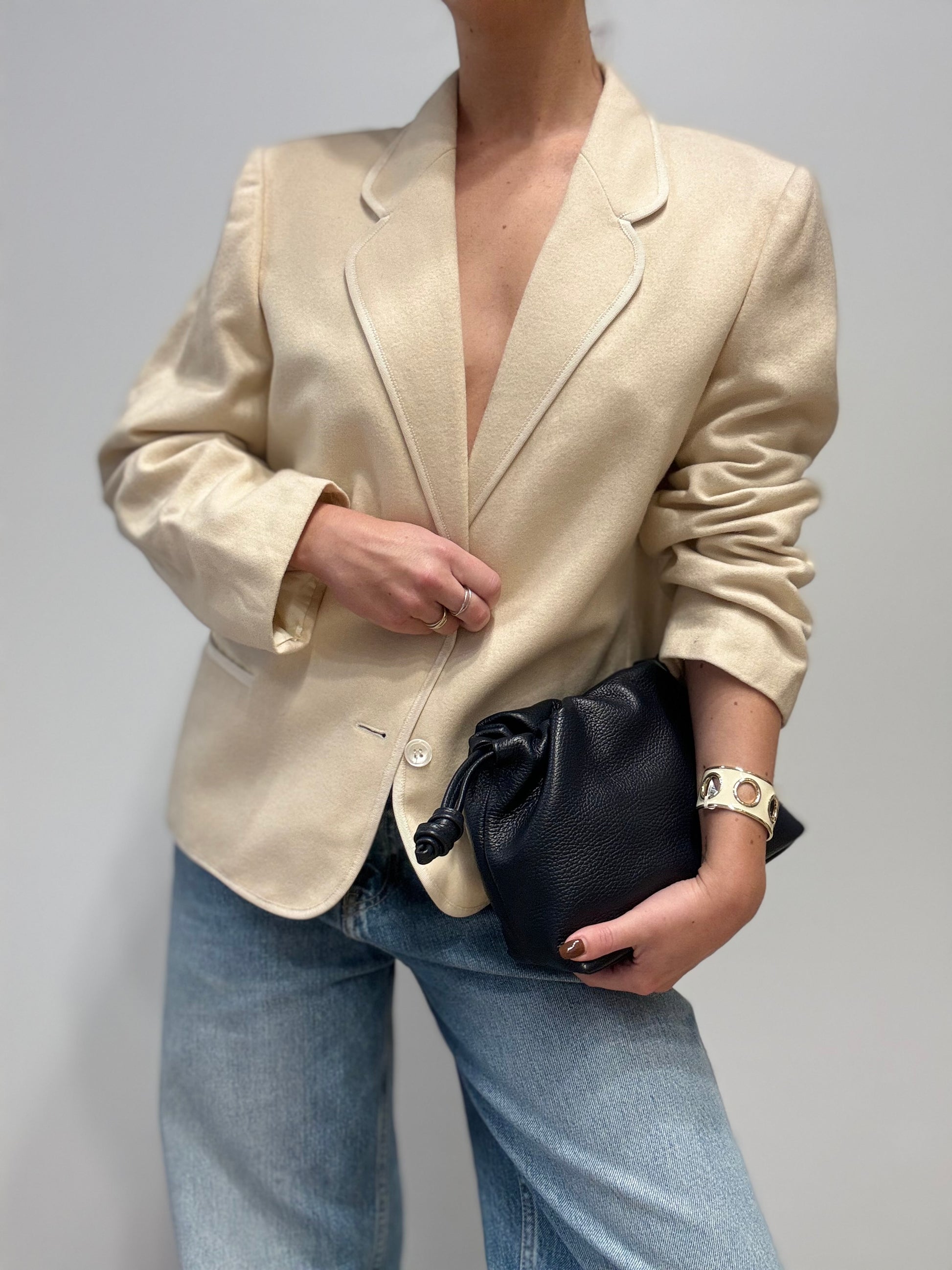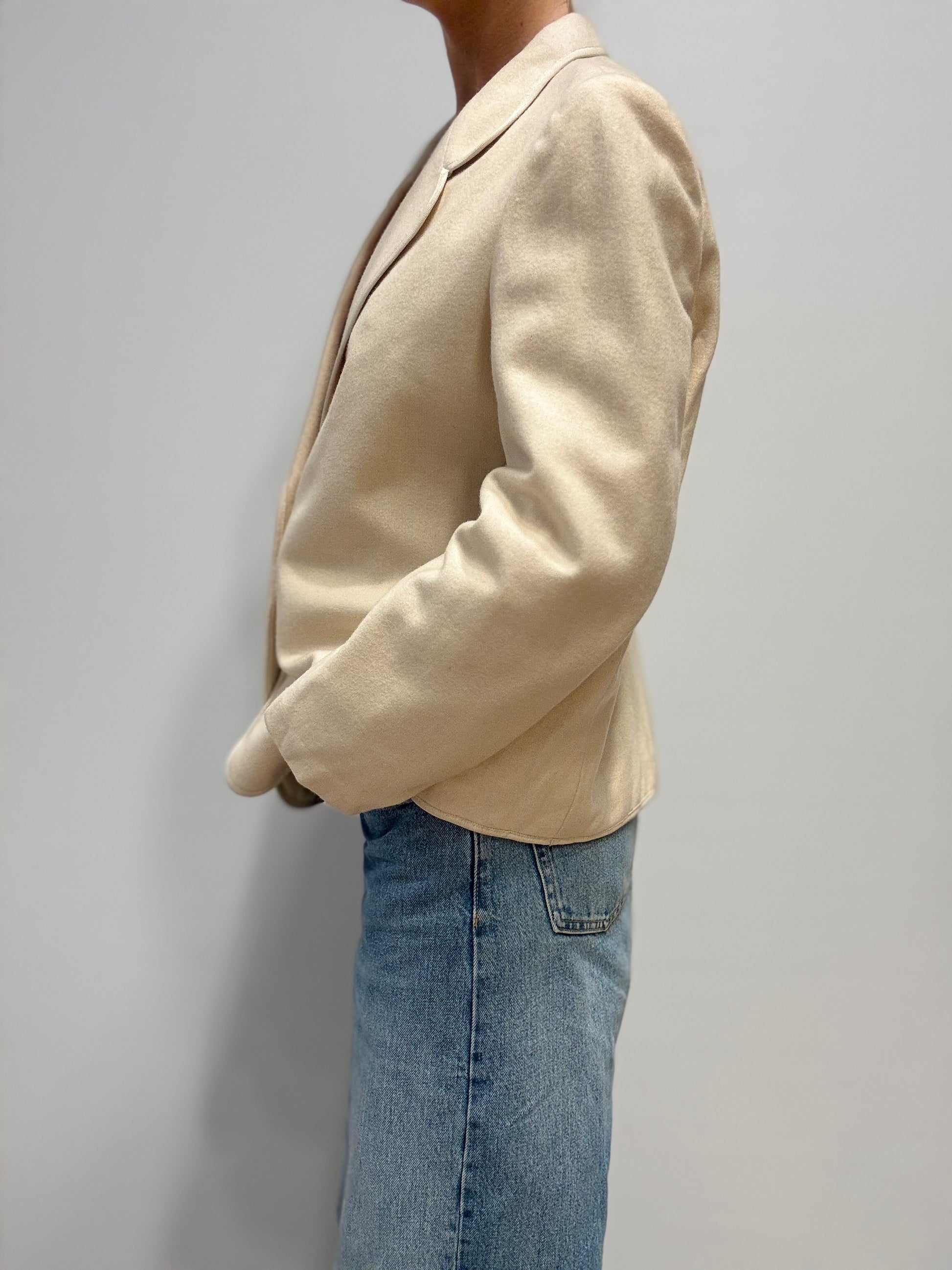 Crèmekleurige Vintage Blazer met Satijnachtige Glans