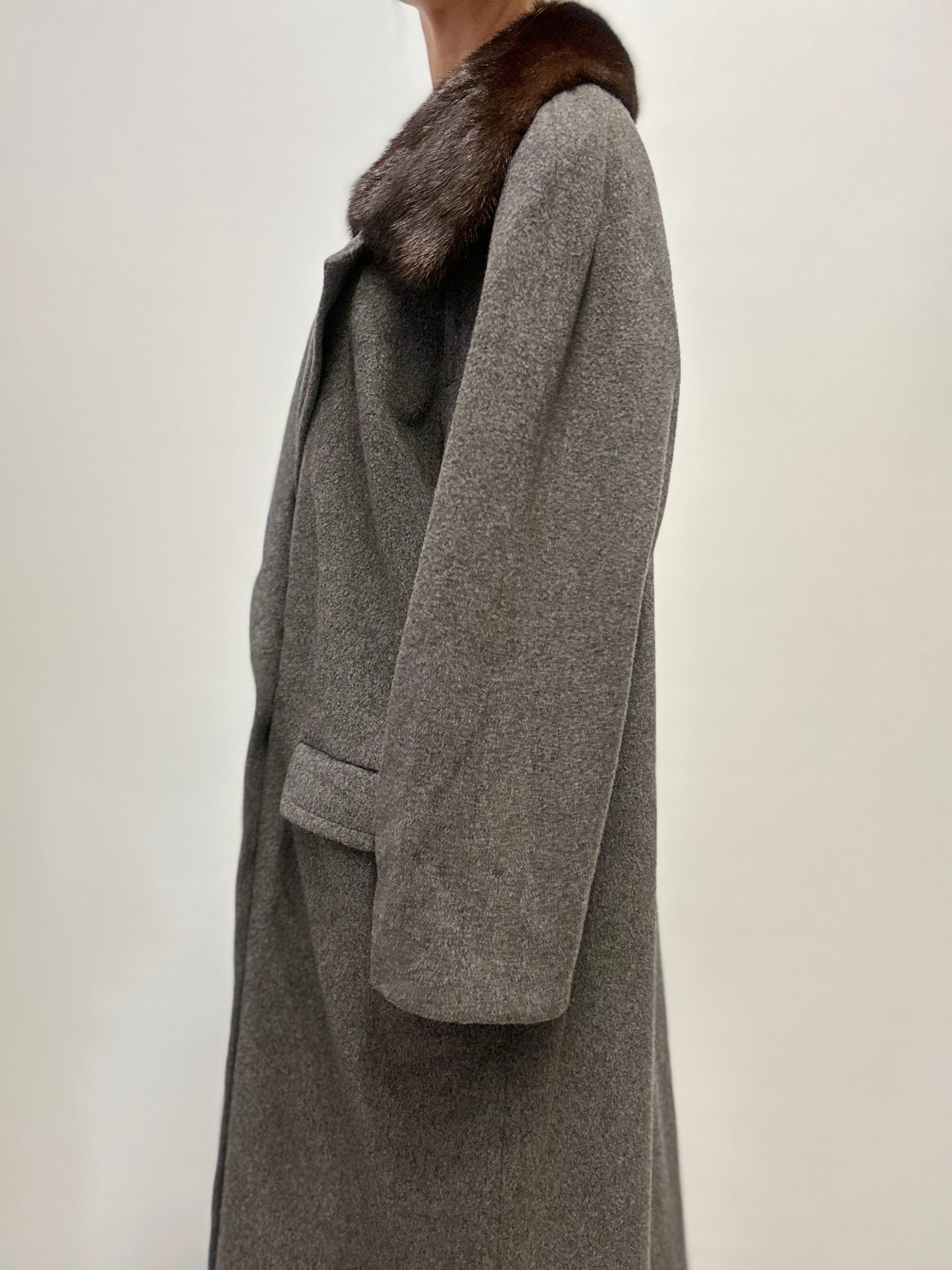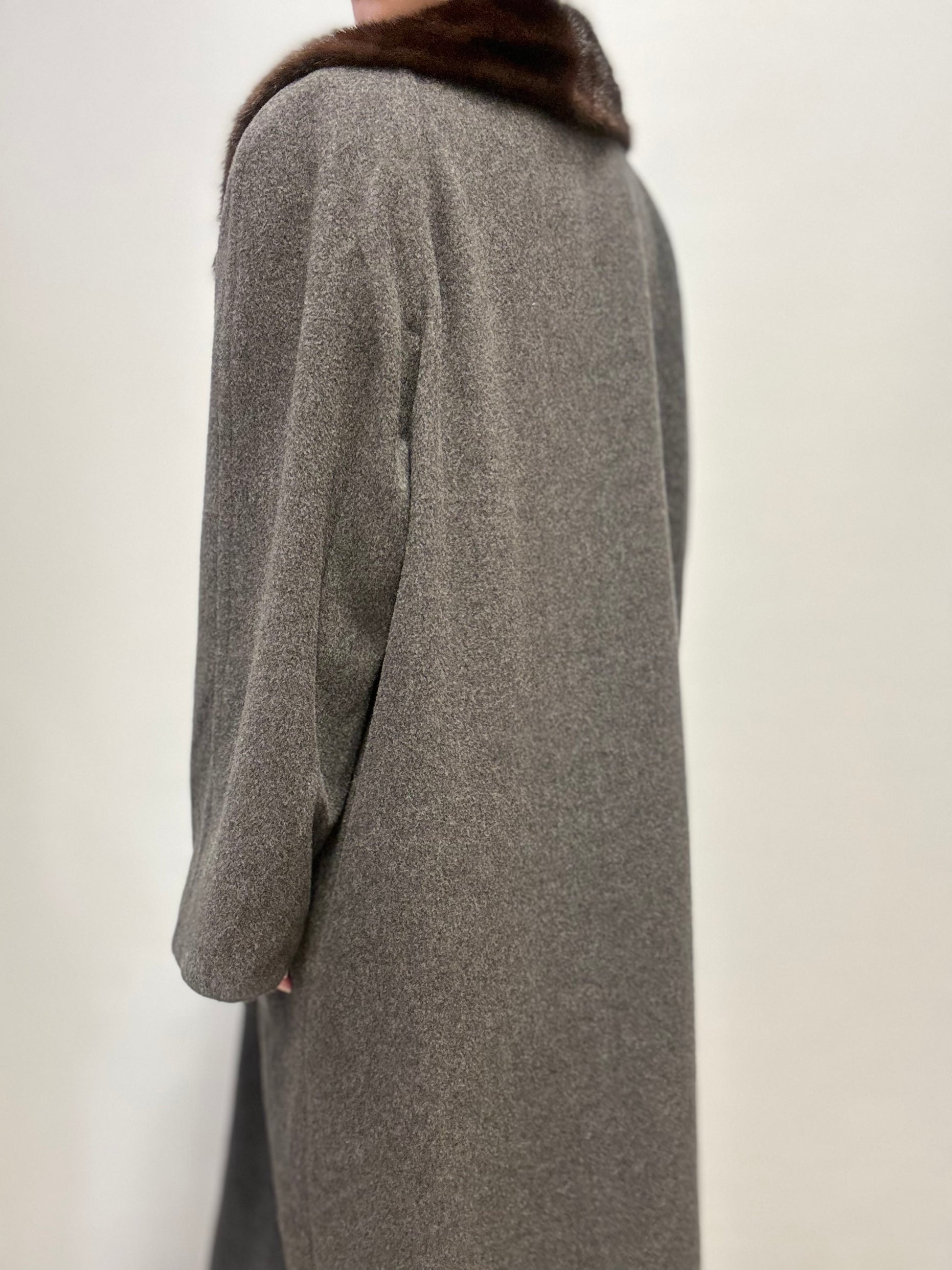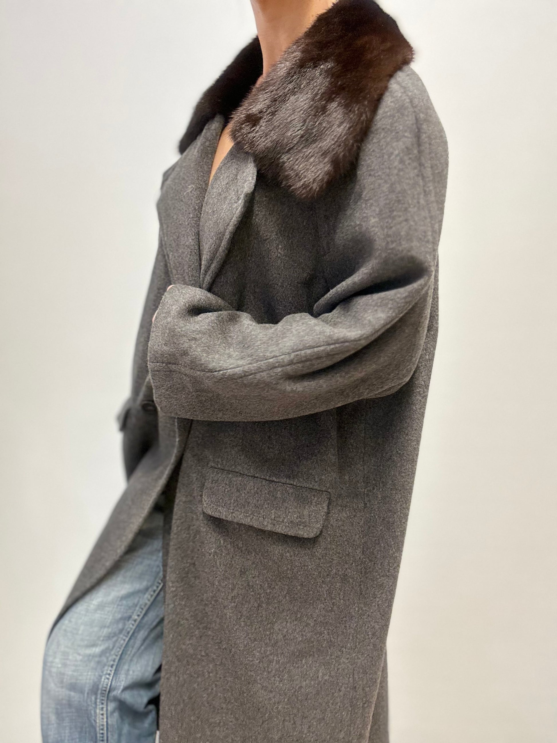 Grijze wollen jas met bont