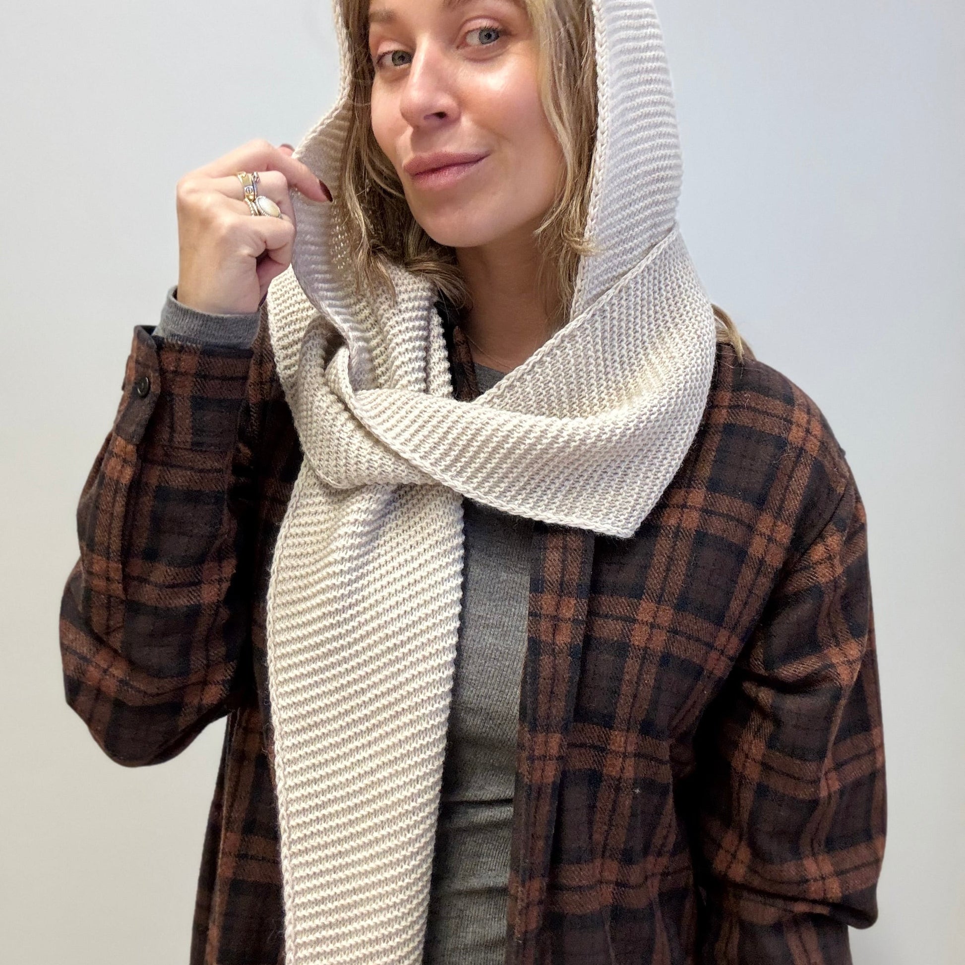 Deze in Italië gemaakte gebreide capuchonsjaal combineert warmte, comfort en veelzijdigheid in één stijlvol accessoire. De zachte mix van alpaca, wol, acryl en viscose zorgt voor een aangenaam draaggevoel en houdt je heerlijk warm tijdens koude dagen. De sjaal kan op verschillende manieren worden gedragen: losjes om de schouders of met de capuchon omhoog voor extra warmte en een moderne look.