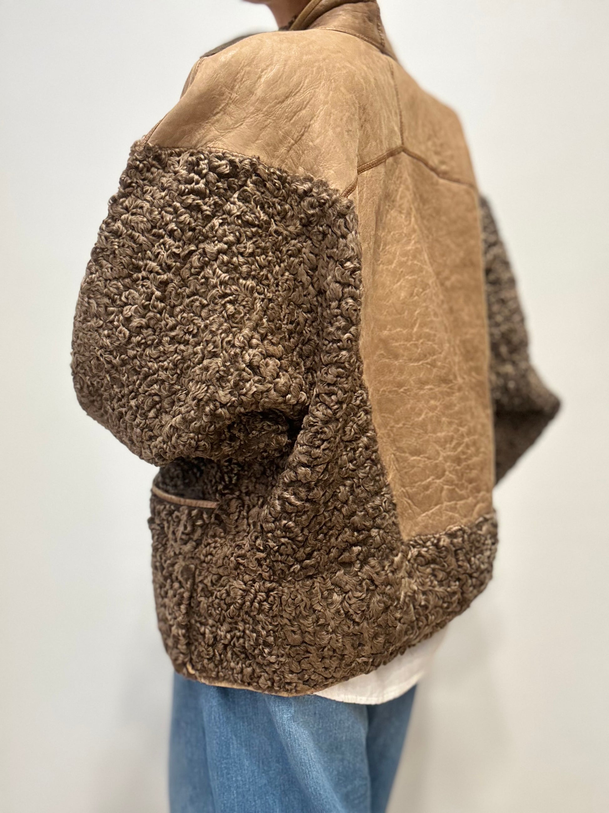 Vintage Omkeerbare Shearling Jas in Warm Camel & Curly Fur