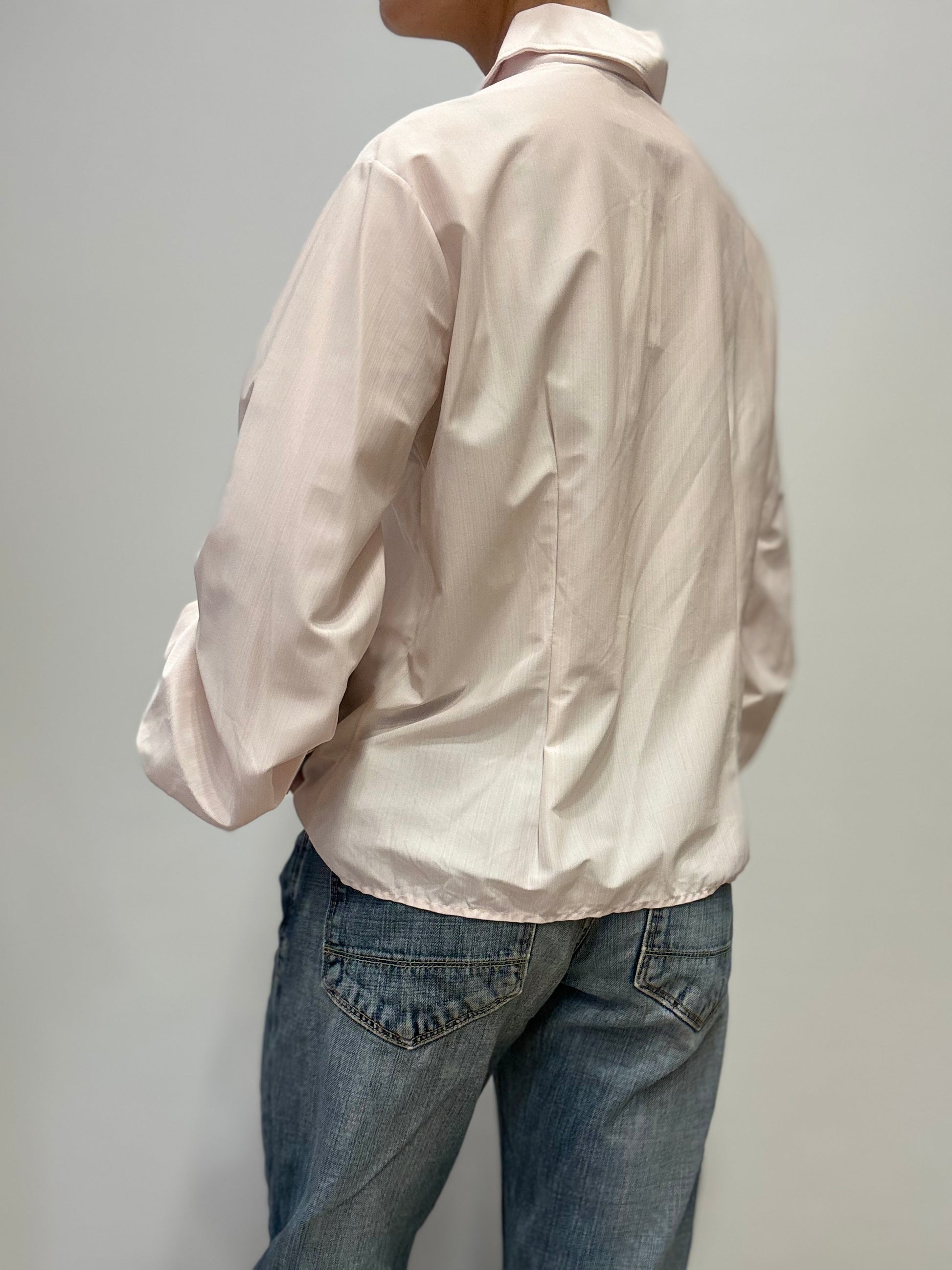 Deze elegante lichtroze blouse heeft een zachte, vrouwelijke uitstraling en een tijdloos ontwerp. De blouse is voorzien van een klassieke kraag, een fijne knoopsluiting en lange mouwen met een losse, comfortabele fit. Dankzij de lichte glans en soepele stof is dit item ideaal voor zowel een nette als casual look.
