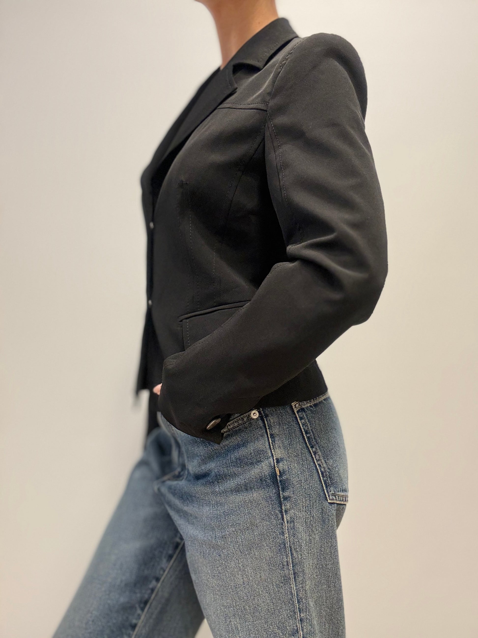 Vintage Max Mara Getailleerde Cropped Blazer in Zwart