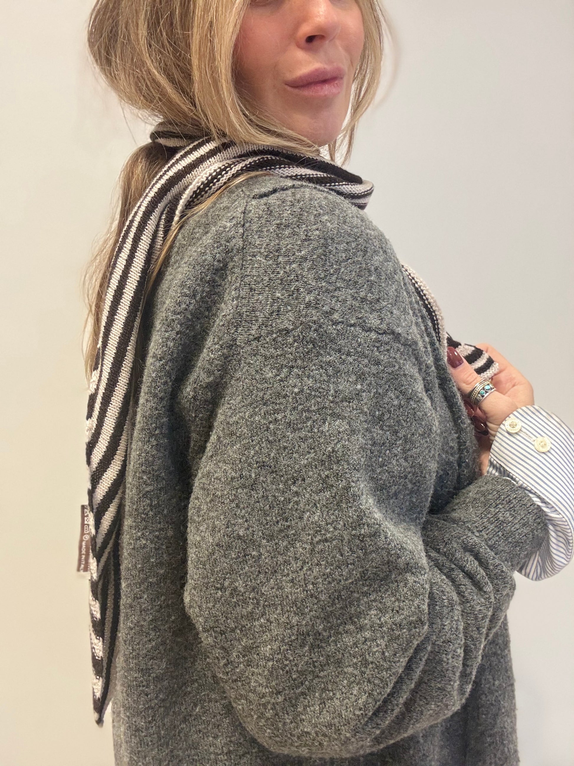 Wollen sjaal met donkerbruine streepjes