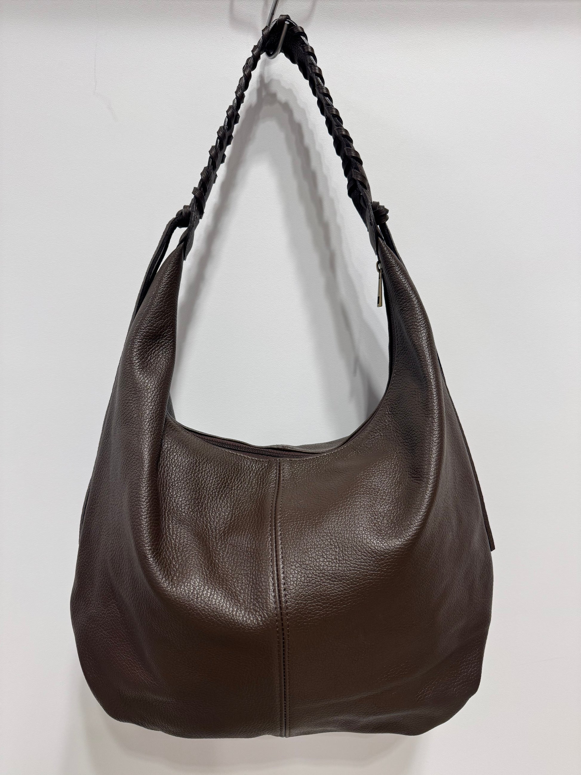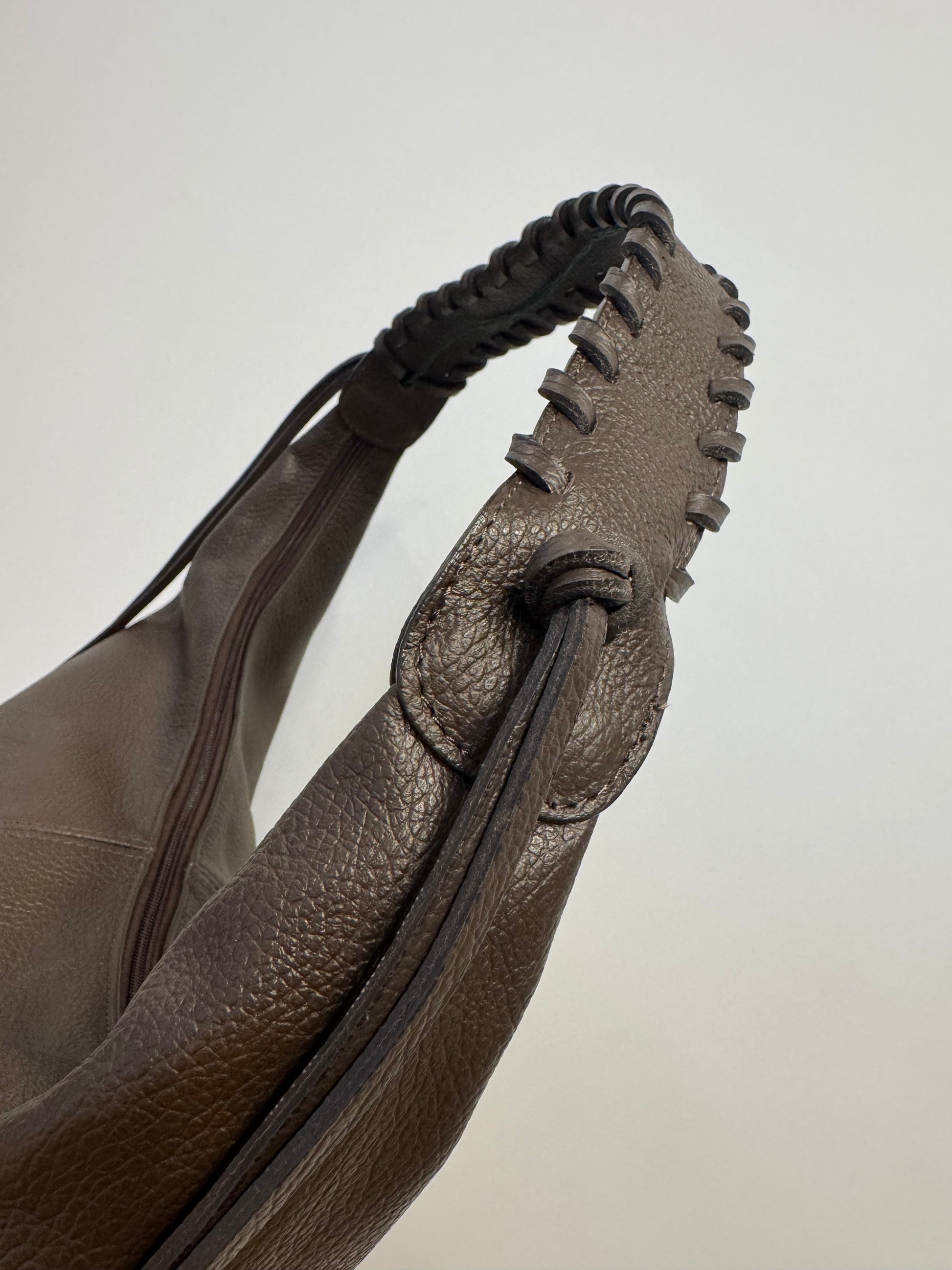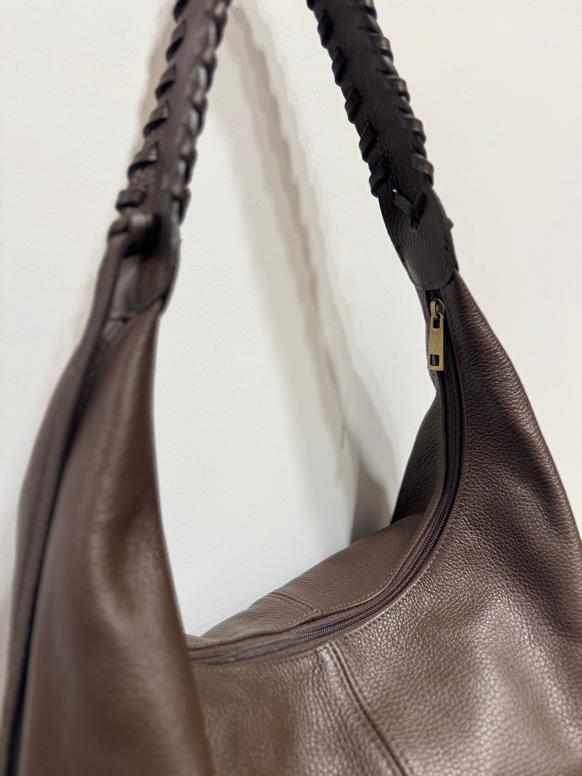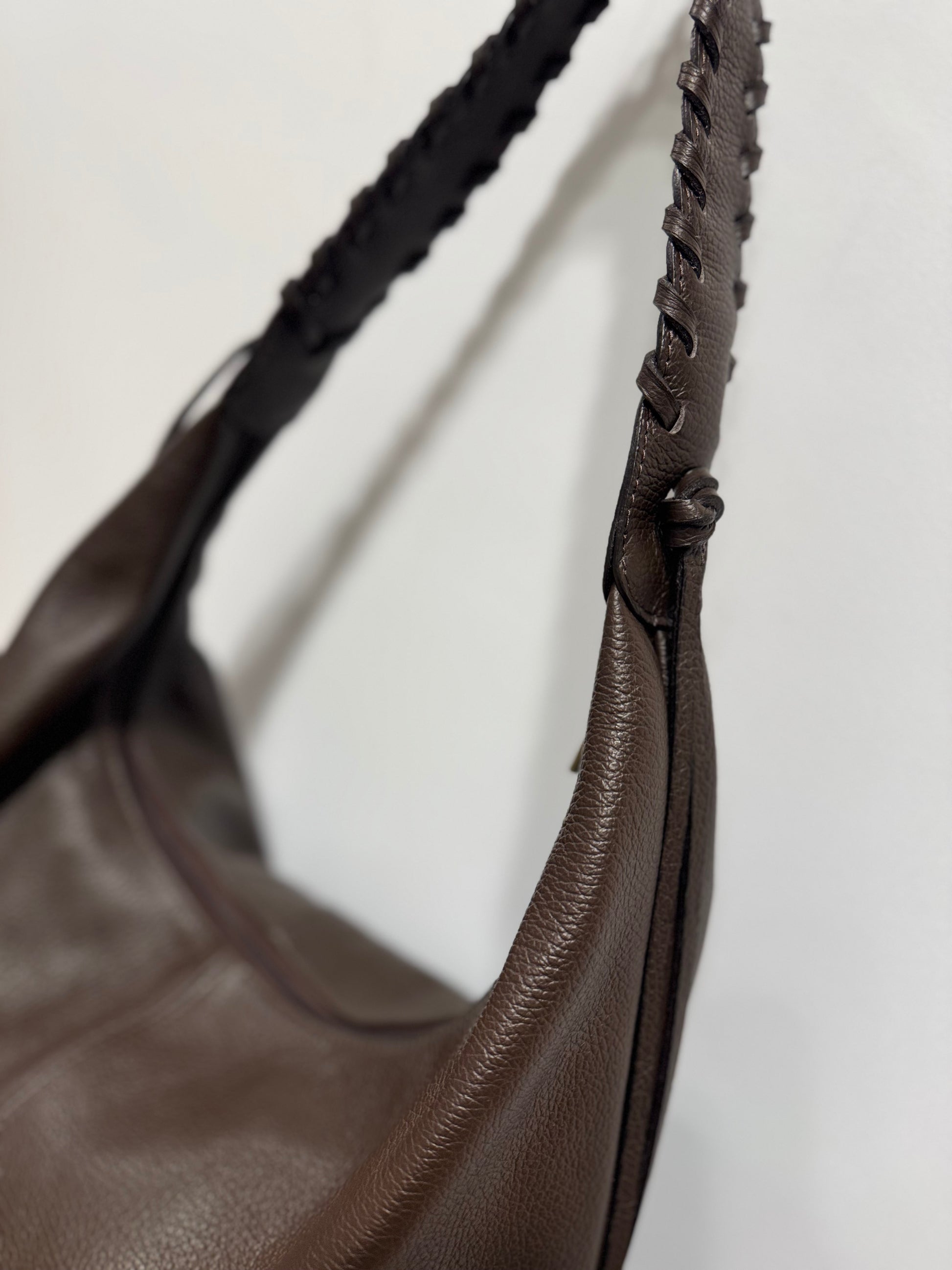 De donkerbruine leren AVEA heeft een rijke, diepe tint die het prachtige generfde leer extra laat spreken. Dit model straalt luxe uit zonder opvallend te zijn, precies de verfijning waar YENVI voor staat. De zachte hobo-vorm maakt deze tas heerlijk draagbaar, terwijl het stevige leer zorgt voor een mooie structuur en duurzaamheid.
