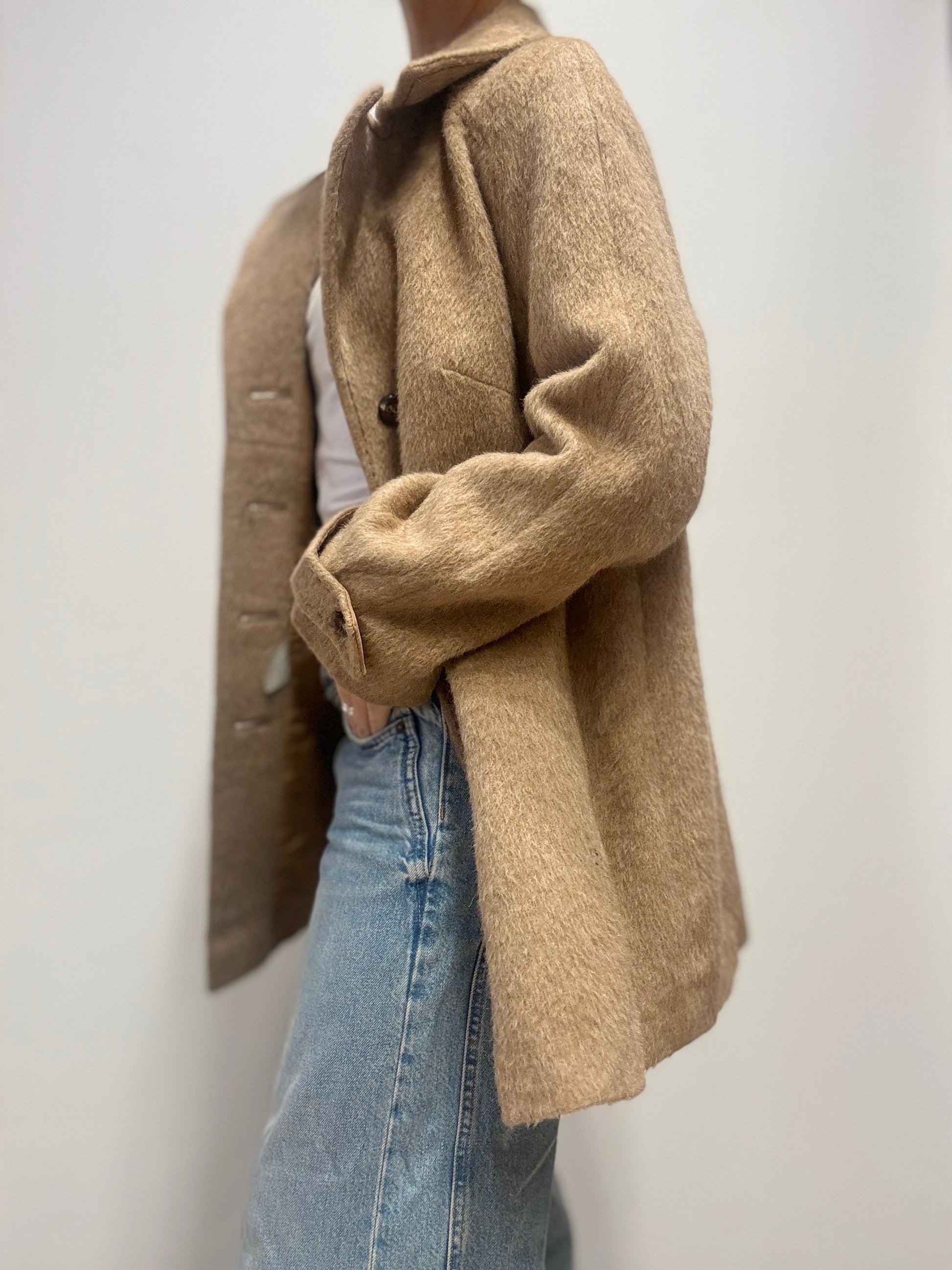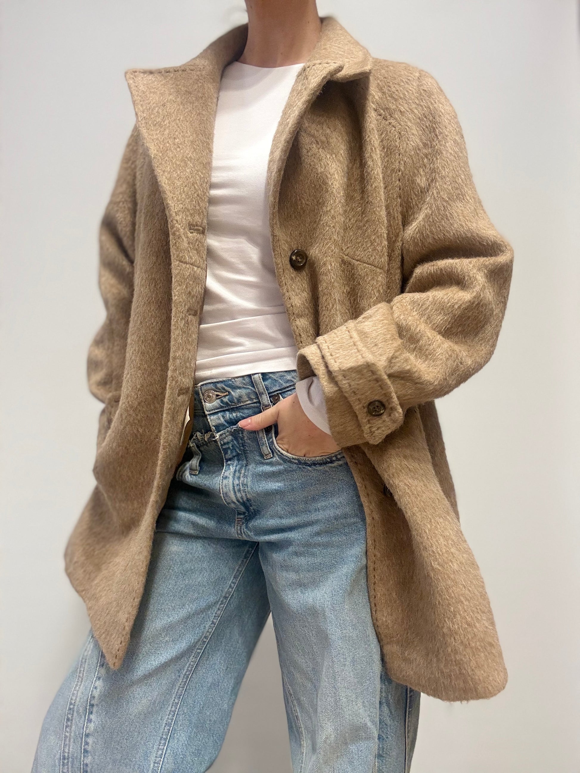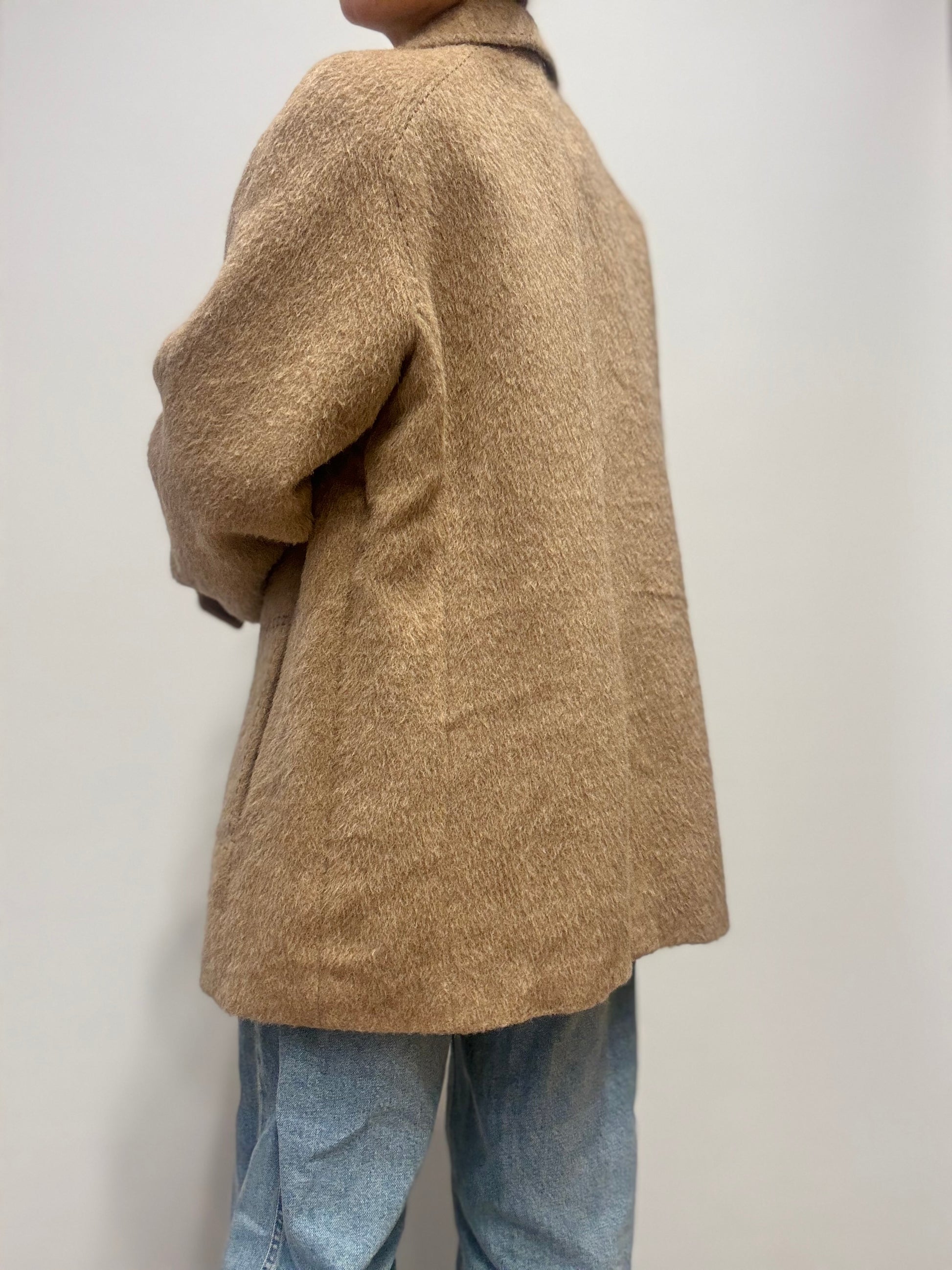 Een luxe en superzacht jasje gemaakt van 100% lama wol. De natuurlijke vezel geeft een prachtige structuur en warmte, zonder zwaar aan te voelen. De rijke kamelkleur en de verfijnde afwerking maken dit een echte tijdloze klassieker.
